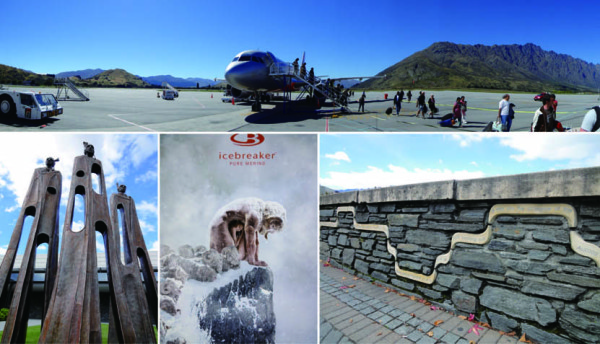 北島のオークランドから国内線で2時間半、一路南島クイーンズタウンへ。ものすごい(!)景色の滑走路に降り立ちました。ターミナルの玄関口にはノッポのマオリ族のオブジェや、キッチュなウールブランドのポスターなどが出迎へ、北島では感じることの出来なかったニュージーランドのイメージが、一気にリアルになりました。