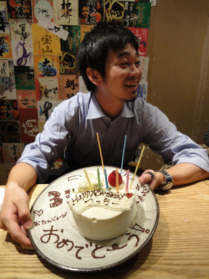 10月11 女々しい?? Posted on 2011年10月11日 by M. A 女々しい?? 【ペテくん】 の誕生日。大の男がグシグシ泣いちゃいました。「だって僕、こんなに大勢の人からお祝いしてもらったの、人生で初めてなんだもん」だって。この日からあだ名が一つ増えました、【メメ】。 33才ゾロ目、がんばれ!!